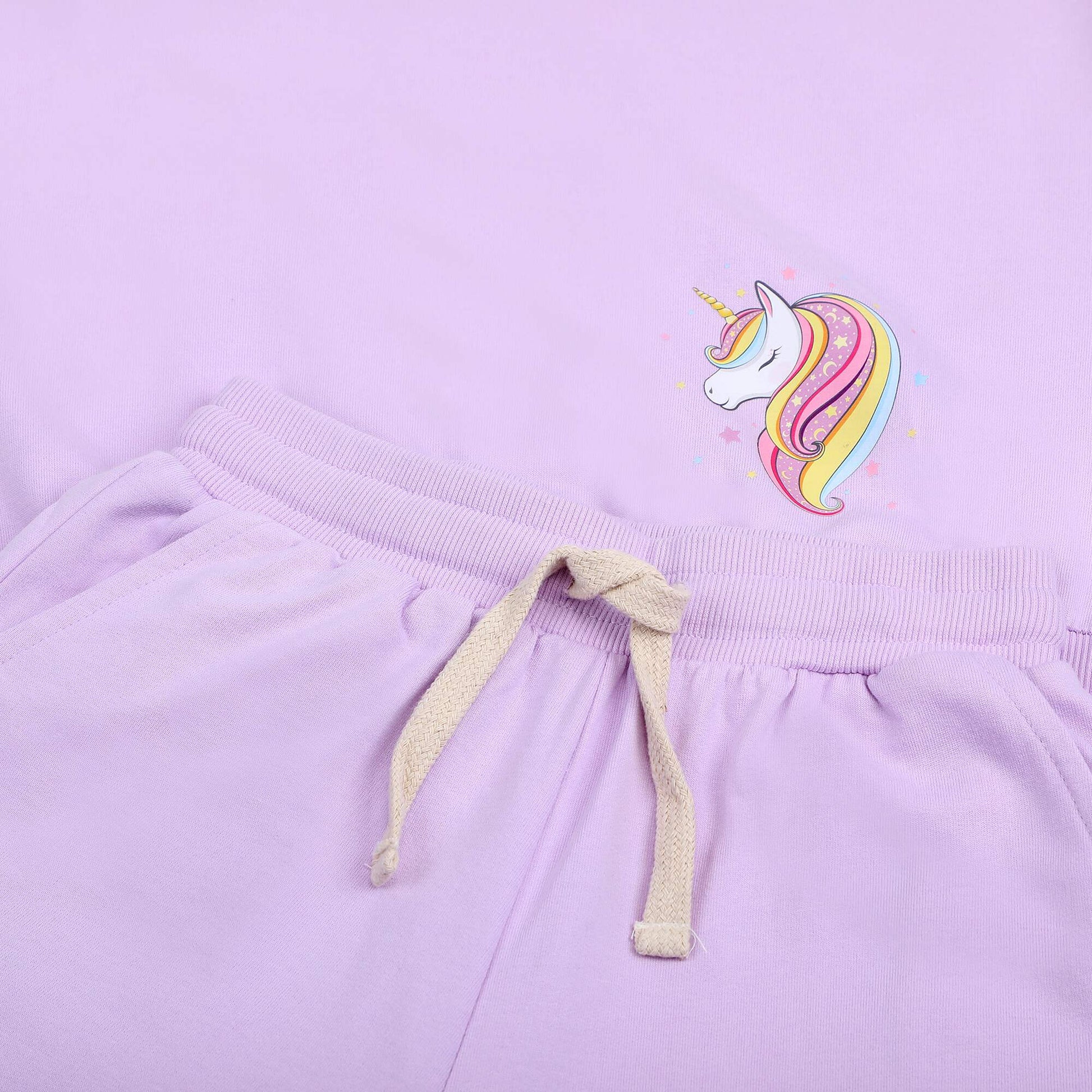 Introducing our Girls Co-Ord Set in delightful lilac, adorned with a charming unicorn design. Crafted from thick Cotton Terry, this set combines magic and comfort. Let your child step into a world of wonder where every day feels like a fairy tale.