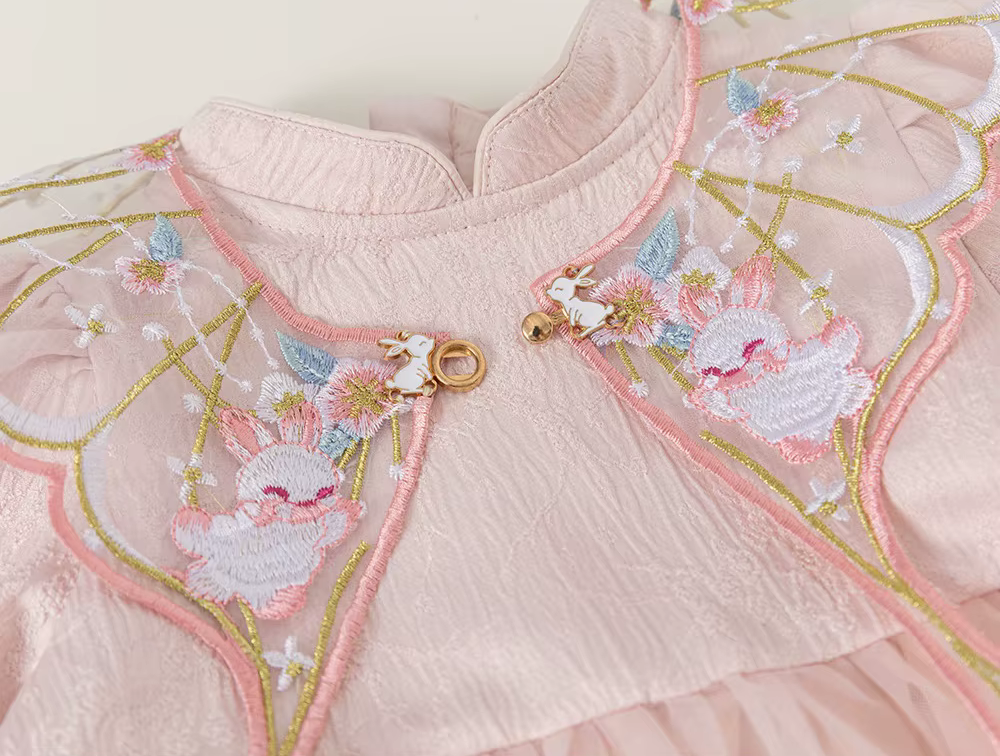 Girls Long Sleeve Chinese Collar Puffy Dress – A charming choice for special occasions. This cute party dress comes in a delightful pretty pink color, designed with a classic Chinese collar style that adds elegance to your little girl’s look. The detachable neckpiece gives flexibility, allowing you to style the dress in more than one way.